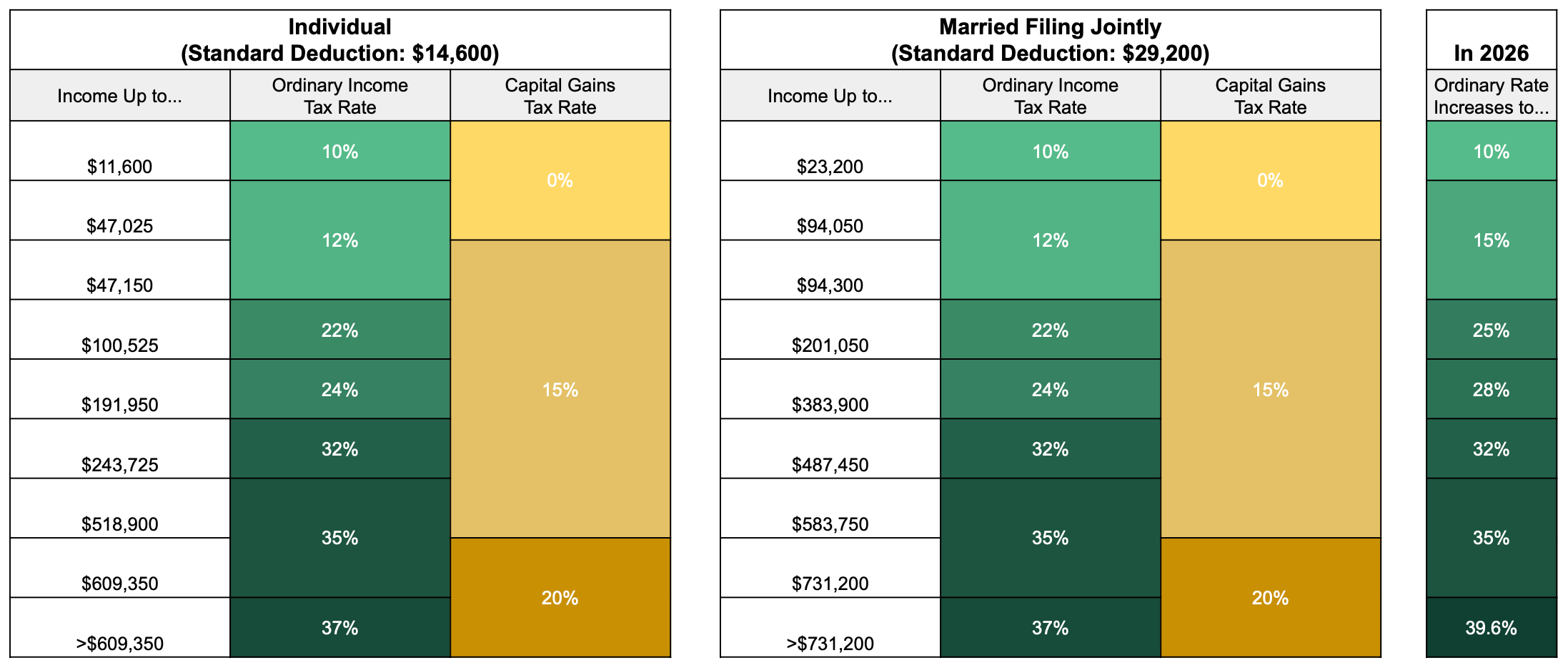 And “taxable income” is calculated after the standard deduction, which adds another $29,200 for married ($14,600 single).